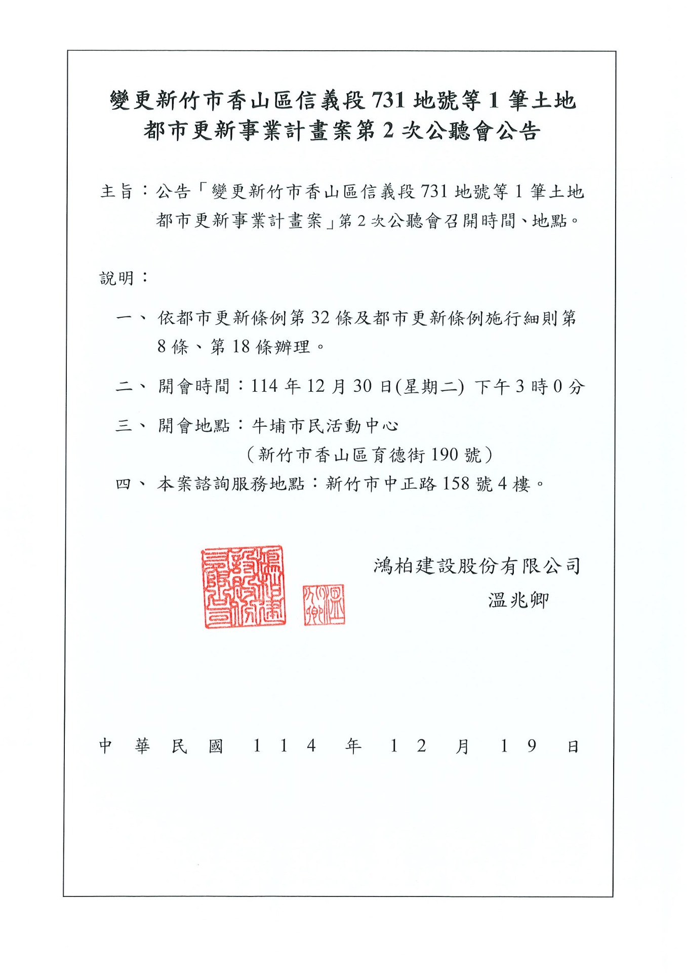 變更新竹市香山區信義段731地號等1筆土地都市更新案